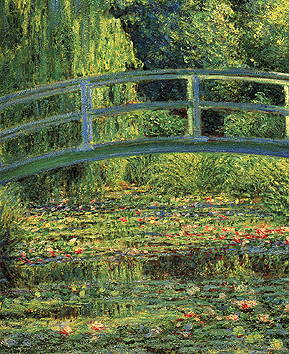 Da sind auch seine berühmten Seerosenbilder entstanden und die mit der japanischen Brücke. Monet hat ja im Laufe der Jahre sein Augenlicht immer mehr eingebüsst und trotzdem weitergemalt. Hier mal ein Beispiel davon: